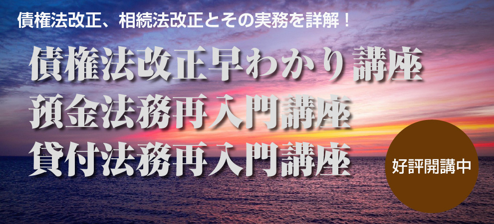 債権法改正と銀行実務の研修講師多数派遣中(お問合せ先 03-3949-4169)
